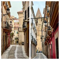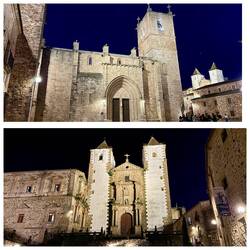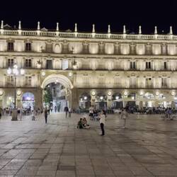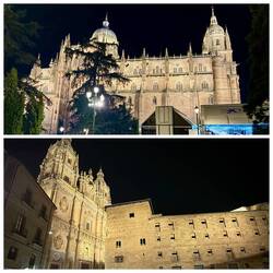 Am Abend haben wir uns dann noch mit den beiden Fahrradpilger:innen Tina und Alex (die wir vor zwei Tagen in der Unterkunft kennengelernt haben) auf dem „Plaza Mayor“ getroffen und zusammen Eis gegessen und uns sehr nett unterhalten. Der Platz ist am Abend wirklich spektakulär beleuchtet. Nach der Verabschiedung von den beiden sind wir noch kurz zur beleuchteten Kathedrale und wurden unterwegs auch noch von einer jungen Frau angesprochen, dass sie uns auch schon unterwegs gesehen hat und dann erkannten wir sie auch. Noch eine kurze aber sehr nette Plauderei 😄. Dann sind wir aber schnell zurück ins Hotel, bevor wir in noch mehr Gespräche von anderen Pilger:innen verwickelt werden 🤪.