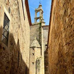 Der Einkauf war schnell erledigt und nachdem wir das Wasser in unsere Wasserflaschen abgefüllt haben, kam die Hautpflege vor der Sonne dran und danach ging es zu Kirche „Iglesia Santa Maria de Aguas Vivas“ aus dem 17.Jh. Was wir nicht wussten war, dass es hier auch eine Burg gab. Die Burg „Hervás“ ist ein defensives Gebäude und seine Ursprünge reichen bis ins dreizehnte Jahrhundert zurück. Weil die „Iglesia de Santa María de Aguas Vivas“ auf den Fundamenten der Burg errichtet wurde, ist sie häufig unter dem gleichen Namen der Kirche bekannt. Der untere Teil der von der Burg erhalten ist, ist Teil des Fundaments der Pfarrkirche. Das Fundament des Glockenturms dieser Kirche ist der untere Teil des Burgturms. Die Burg selbst stammte aus dem 13.Jh. (Quelle: https://es.m.wikipedia.org/wiki/Castillo_de_Her…)