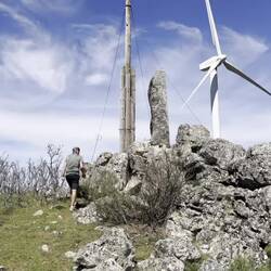 An einer Wegkreuzung konnte man sich entscheiden, ob man ca. 2,8 km bergauf zum Bergkamm des „Pico de la Dueña“ geht oder rechts über „Pedrosillo de los Aires“ geht - was jedoch nicht der regulären Wegführung entspricht und man gehen sollte, wenn zu wenig Wasser mitgeführt oder sich körperlich nicht in der Lage sieht. Wir nahmen aber natürlich den Weg über den Bergkamm. Der „Aufstieg“ war recht lang und bei heißeren Temperaturen sicherlich eine extreme Herausforderung. Oben auf dem Bergkamm standen Windräder, die sich jedoch nicht drehten. Ich kann mich noch gut an deren Geräusche erinnern, als ich 2017 hier vorbei kam. Mit 1.150 m erreichten wir den höchsten Punkt (zum Vergleich: der Brocken ist 1.141 m hoch).