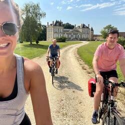 Another beautiful ride, this time through the amazing Bordeaux chateau wineries to the gorgeous wine town of Saint Emilion. It certainly lived up to the hype with winding cobbled streets, great cafes and restaurants and wine shops on every corner. A long boozy lunch here made for a very tough 20km to our accom in 30 degree heat! 🥵 This was the toughest part of the 4 days for sure, but the wonderful Chateau La France awaited us…well the guesthouse of the Chateau did. 🤫