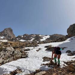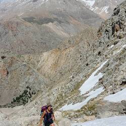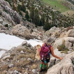 Am ersten Tag im Aladağlar Gebirge wollen wir uns ein wenig einlaufen. Direkt zum Start kommt eine Schafsherde auf uns zu. Gehütet von 6 Kangal Hunden. Herr Linguini war in Gefahr.. Ich konnte dieLeggi altro
