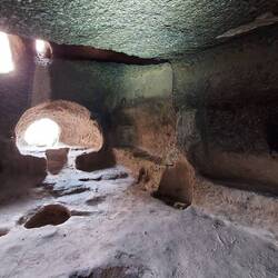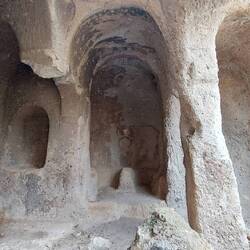 Auch wir starten zu einer frühen Wanderung. Mit Stirnlampe erkunden wir die Felswohnungen. Wahnsinn was dort in den Stein gebaut wurde. Mehrere Räume hintereinander. mit teilweise aufwendigen Säuler, sowie hübsche Kirchen mit Fresken. Sehr beeindruckend👌!