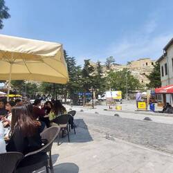 Zuvor ging es über holprige Straßen und ursprüngliche Dörfer durch die Zentraltürkei. Stieg man aus, so war man eine willkommene Abwechslung für die Bewohner und zahlreich strömten Einheimische herbei. Alles sehr freundlich und so folgte ich einer Einladung in den örtlichen Baumarkt. Es gab Tee und die Übersetzerapp wurde rege genutzt. Seit 35 Jahren arbeitet der 45 Jährige in seinem gut sortierten kleinen Laden.