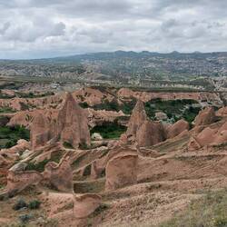 Zuerst geht es jedoch in die Werkstatt. schleichender Plattfuß. Eine M8 Schraube samt Mutter hat sich durch den Reifen gebohrt. 6€ ärmer und einen Handabdruck reicher geht's auch schon weiter. Kurz darauf ist Göreme erreicht, welches wir lediglich durchfahren. Göreme ist der Hauptort Kappadokien's. Es herrscht reges Treiben. Quadverleih. Reitangebote, Souvenirshops, Hotels und Restaurants reihen sich aneinander. Dies zweifelsohne in sonst hübscher Kulisse.