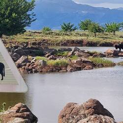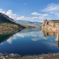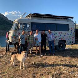 Wir staunen nicht schlecht. Tatsächlich wirkt es göttlich. Der Euphrat & seine landschaftliche Kulisse zeigen sich spektakulär. Wir sind fasziniert und beziehen einen Platz etwas entfernt der Polposition. Zwei türkische Camper & ein Zelt sind ebenfalls dort. Wie sich herausstellt sehr freundlich und herzlich. Wie wir erfahren ist sogar Prominenz mit von der Partie. Ein berühmter Schauspieler im Fernsehen & am Theater, Regisseur, sowie Schriftsteller in einer Person. Insgesamt ist die in gemeinschaft reisende Gruppe eine Bereicherung mit toller Ausstrahlung. Wen man in solch entlegenen Ecken nicht alles trifft😬.