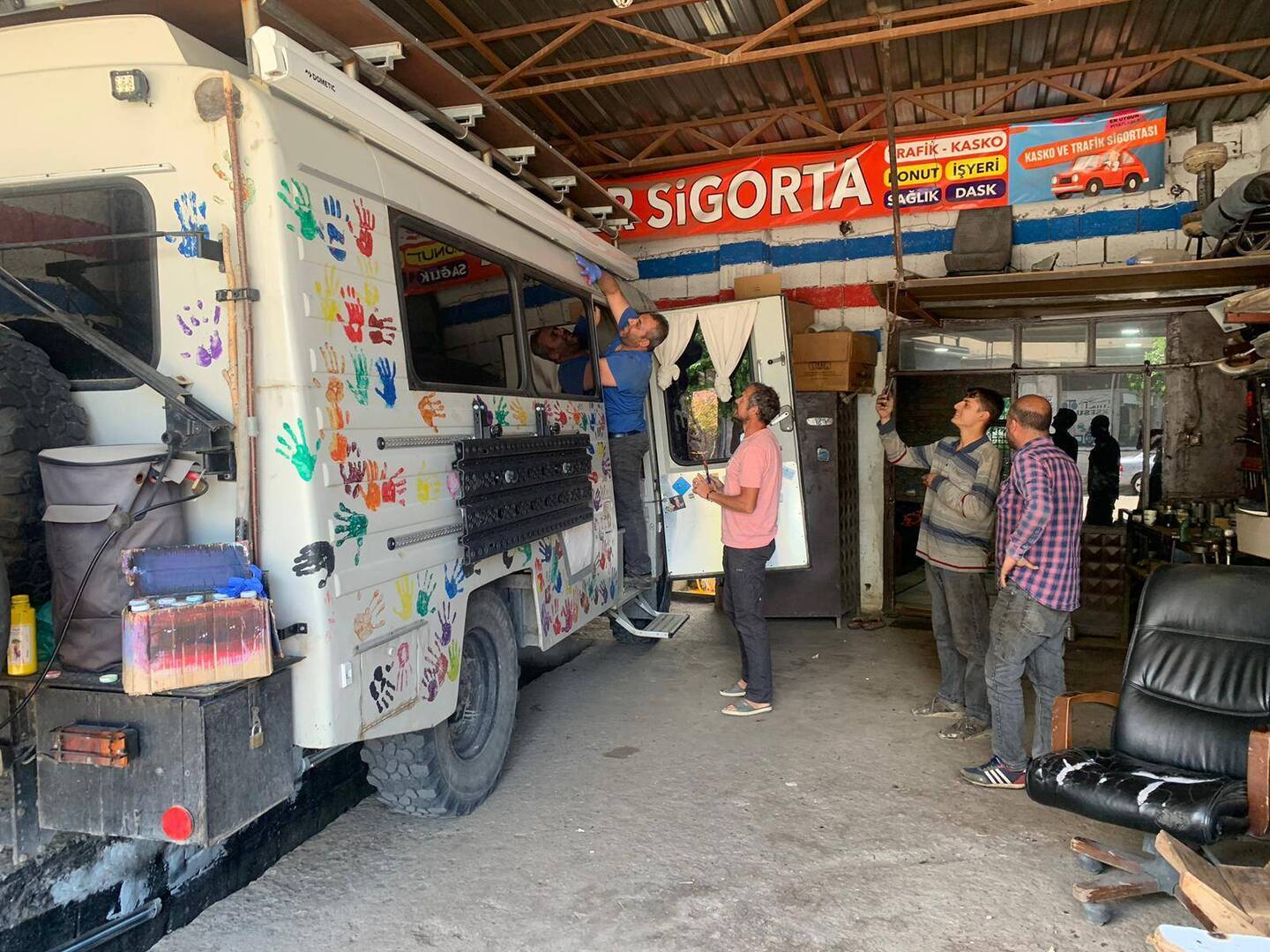 Daraufhin peilen wir einen weit abgelegenen Platz an. Unterwegs stoppen wir noch bei einer Auspuffwerkstatt. Ahmet schweißt unseren Auspuff. Parallel kommt der Tee und es folgt eine nette Unterhaltung. Geld möchte er nicht von uns. Ahmet & sein Freund geben uns Handabdrücke in den Farben ihrers Lieblingsfussballvereins. Galatasaray Istanbul⚽️.