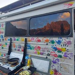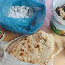 Nach gutem Schlaf kommt morgens ein Mann. Scheinbar unser Nachbar in einigen hundert Metern Entfernung. Er fragt ob wir was brauchen. Bietet seine Dusche an & lädt zum Frühstück. Wir lehnen dankend ab. Etwas später kommt er erneut. Diesmal mit frisch gebackenen Kuchen & Joghurt. Dann kommt seine Frau und bringt Tee & Pfannkuchen mit. Alles sehr lecker & reicht länger😬. Drei von sechs Kinder sind mit von der Partie & wir machen Handabdrücke. Die Herzlichkeit der Kurden beeindruckt immer wieder❤!