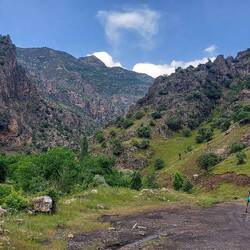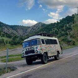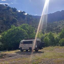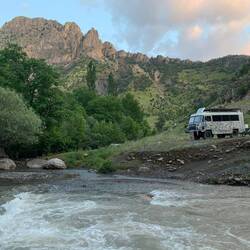 Wir queren einige kleine Ortschaften. Es geht hoch her. Die Leute haben Spaß mit uns. Überall winkt und grüßt es. Ein Bäcker schenkt uns noch ein Brot und ein Wasserhahn wird noch flux bei einem Baumarkt getauscht. Park4Night Einträge gibt es hier tatsächlich deutlich weniger als im Nord Irak. Das werten wir als gutes Zeichen😉! Über Satellitenbilder haben wir eine Straße, welche in ein Seitental führt anvisiert. An der Abzweigung stoppt uns ein unüblich westlich gekleideter Mann. Sieht aus wie ein Lackputzer. Er sagt, wir können da nicht rein und sollen ihm folgen. Mmh, na gut. Er bringt uns zu einer Tankstelle und sagt hier können wir bleiben. Nun reicht es mir. Eine Tankstelle ist bei Weitem nicht der Ort an dem wir übernachten wollen. Ich frage ihm ob er von der Polizei oder vom Militär ist. Er verneint. Also U-Turn und wieder zurück. Das ist mir dann auchmal zu doof.