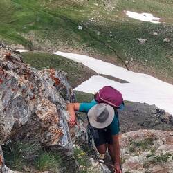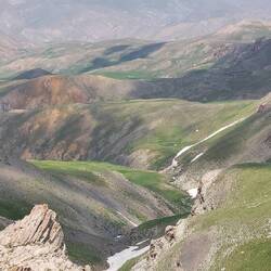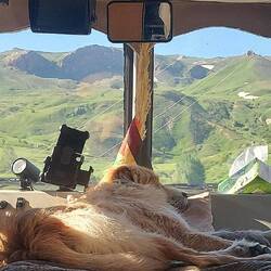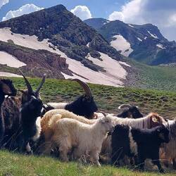 Bei 3200m Höhe ist für uns Schluss. Die 3500m sind ohne weitere Ausrüstung nur im Hochsommer möglich. Weiter geht es über eine kurze Kletterpartie in ein weiteres Hochtal. Ein lebhafter Bach wird per Sprung von einem Felsen überwunden. Dann geht es wieder abwärts. Immer wieder treffen wir auf Schafs- & Ziegenherden. Hier oben sind Pferde, Esel & Mulis die Transportmittel der Wahl. Die Straße endet mit unserem Stellplatz. Die Herden werden hauptsächlich mit Pferden getrieben. Hunde werden unterstützend eingesetzt. Die Fohlen der Pferde sind mit von der Partie und ständig bei der Mutter. Bianca gefällt das sehr sehr gut😀!