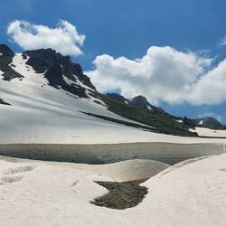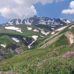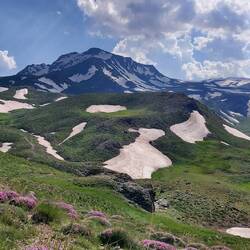 Die Wiesen sind nass. Die Natur explodiert förmlich. Der Schnee weiter oben ist teils noch sehr hoch. Vermutlich lag hier weiter unten vor zwei - drei Wochen ebenfalls noch Schnee.