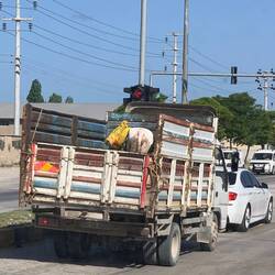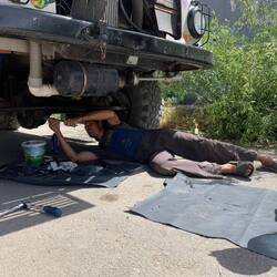 Übernachtet wird im Schrauberviertel. Dort ist es ruhig und wie es aussieht haben wir dieses die nächsten Tage ja für uns😁! Am Morgen geht es ans Werk. Unser treues Zuhause bekommt neues Motoröl. Zudem werden beide Differenzialöle, Dieselfilter, Öldrückgeber gewechselt. Der gewählte Platz ist sehr gut zum Schrauben. Auch wenn mehr los ist als erwartet. Kühe werden nämlich angeliefert. Offensichtlich auf Bestellung wie beim Pizzaservice. Kühe für das Opferfest. Vermutlich geht die Geschichte so: