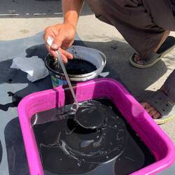 Dann duschen wir noch etwas versteckt im Schrauberviertel und machen uns stadtfein. Wir sind eingeladen. Halit hat viele Verwandte in Hakkari und so kam der Kontakt im Vorfeld zustande. Der freundliche Herr im Ruhestand lebt parallel in Köln und in Van. Wir freuen uns sehr auf das Treffen. Wir möchten wissen wie er in Deutschland aufgenommen wurde. Gastfreundschaft ist ja nicht grad die Stärke der Deutschen. Jeder der nur einen Tag in Kurdistan gewesen ist, weiß was ich meine! Außerdem wie er das Leben in Kurdistan und Deutschland sieht. Er war Gastarbeiter der ersten Generation. Stationen wie die Ford Werke und Zechenarbeit im Ruhrgebiet stehen in seiner Vita. Wir erhalten wertvolle Einblicke, haben gute Gespräche und werden herzlichst bewirtet. Am späteren Abend hinterlässt Halit noch einen Handabdruck und wir verabreden uns für Köln im Winter 2025❤!