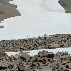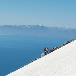 Die Schneefelder meistern wir gut. Das Geröll ist schwierig. Auch Herr Linguini rutscht ziemlich durch die Gegend. Mit viel Geduld und Überlegung überwinden wir die schwierigen Stellen und sind gegen Mittag auf dem Kraterrand. Der Ausblick erinnert an dem aus dem Flugzeug.