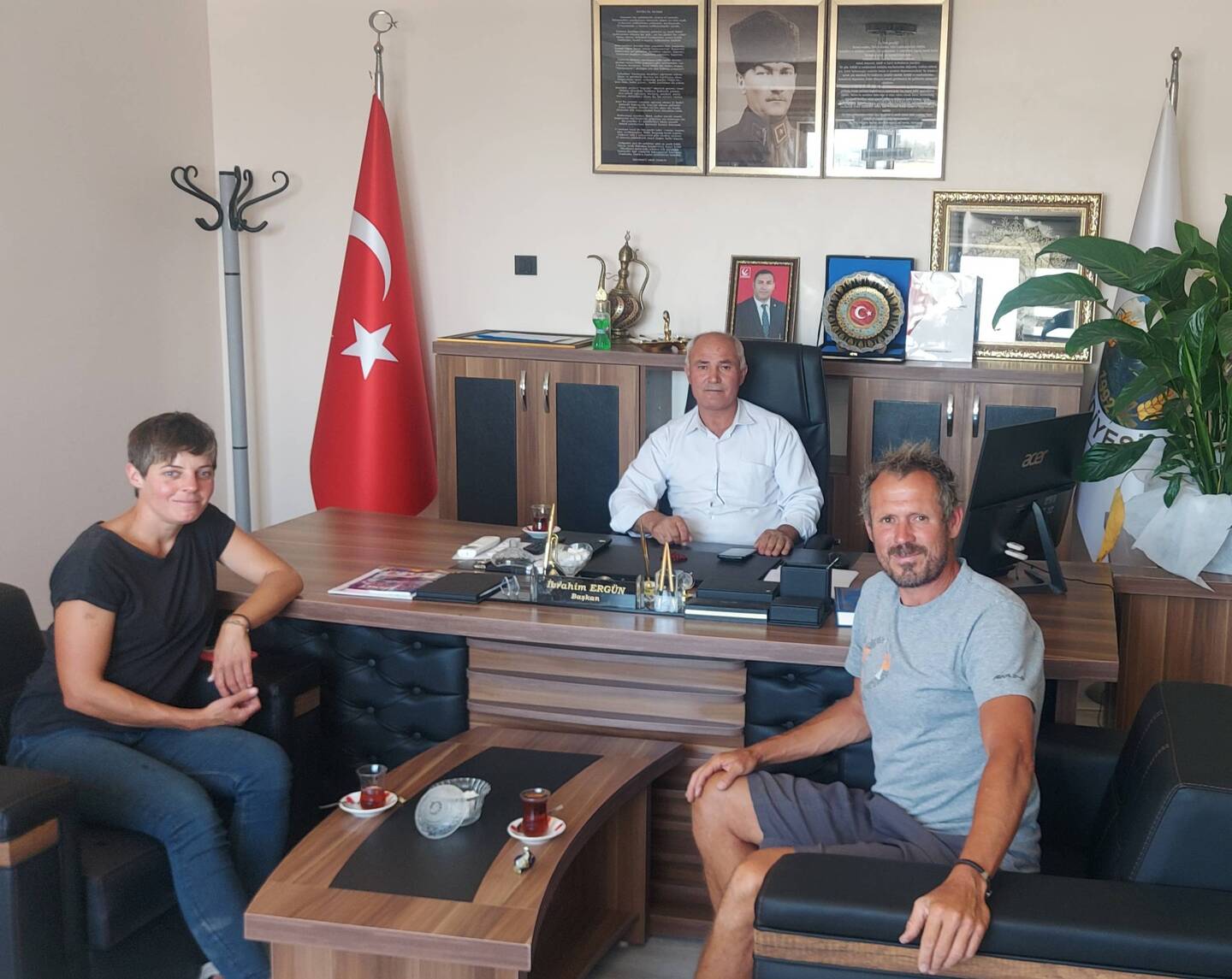 Wir landen wir im Büro des zweiten Bürgermeisters. Vermutlich der Gemeinde. So genau wissen wir das tatsächlich auch nicht. Aber der Tee schmeckt, die Stimmung ist freundlich und es gibt die sonst nicht zugänglichen Pralinen. Einen Presseausweis hat er ebenfalls und so werden weitere Handabdrücke gefilmt und dokumentiert😀.