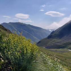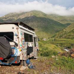 Nach der Passhöhe gewinne ich an Sicherheit. Die erste Etappe werde ich schonmal schaffen. Zurück kann ich ebenfalls jederzeit. Kein Problem👌. So genieße ich den Abstieg bei herrlichen Wetter ins auf 2400m Höhe gelegene Yukari Kavron.