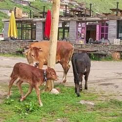 Die Sonne lacht und so geht es in mein bislang größtes Bergabenteuer. Eine Hirtin warnt mich noch vor irgendwas. Ich gebe ihr einen Daumen und gehe meinen Weg. Erstens kann ich jederzeit umdrehen. Zweitens habe ich Essen für vier Tage. Also los💪!