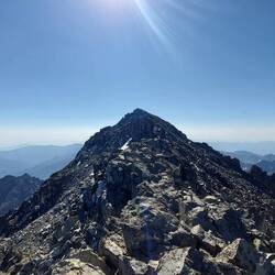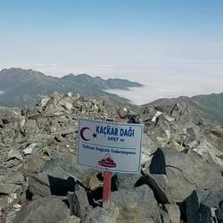 Die letzten 200 Höhenmeter sind steil. Ein Pfad manchmal da, dann wieder weg. Schneefelder kann ich in dieser Steigung nicht mehr kreuzen. Ich arbeite mich vorwärts und suche mir eigene Wege. Die letzten Meter kletter ich auf gutem und festen Fels. Dann schaue ich ins Leere. Oben, tatsächlich oben. Zumindest bin ich auf dem Gebirgsgrat. Dieser ist ca. 1m breit. Danach geht es fast senkrecht wieder runter. Puh, hier muss man schwindelfrei sein. Der Grat führt mich im Verlauf zur Gipfelmakierung. Der höchste Punkt und der fünft höchste Berg der Türkei ist somit erklommen💪.