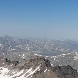 Zumindest ist schonmal Kaiserwetter. Das macht die Orientierung leichter und hebt die Stimmung. In einem Schneefeld stoße ich wieder auf frische Bärenspuren. Auf 3600m, in karger Umgebung, hätte ich nicht damit gerechnet. Ich singe also mal wieder etwas ausgiebiger🤠!