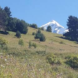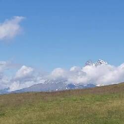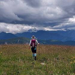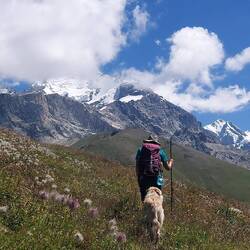 Tatsächlich wird es die erste entrückte Wanderung im Großen Kaukasus für uns. Schöne Aussichten, teils keine Wege und keine weiteren Wanderer. Wir fühlen uns zunehmend angekommen.