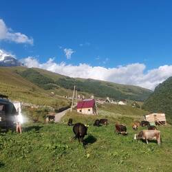 Dann geht's weiter in Richtung Ushquli. Die Straße ist gut. Das ist noch nicht lange so. Einst eine verrufende 4x4 Piste, wird der Weg nun für den Tourismus "komfortabel" ausgebaut. Der Verkehr hält sich trotzdem in Grenzen und schön ist die Strecke allemal.