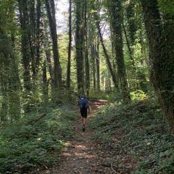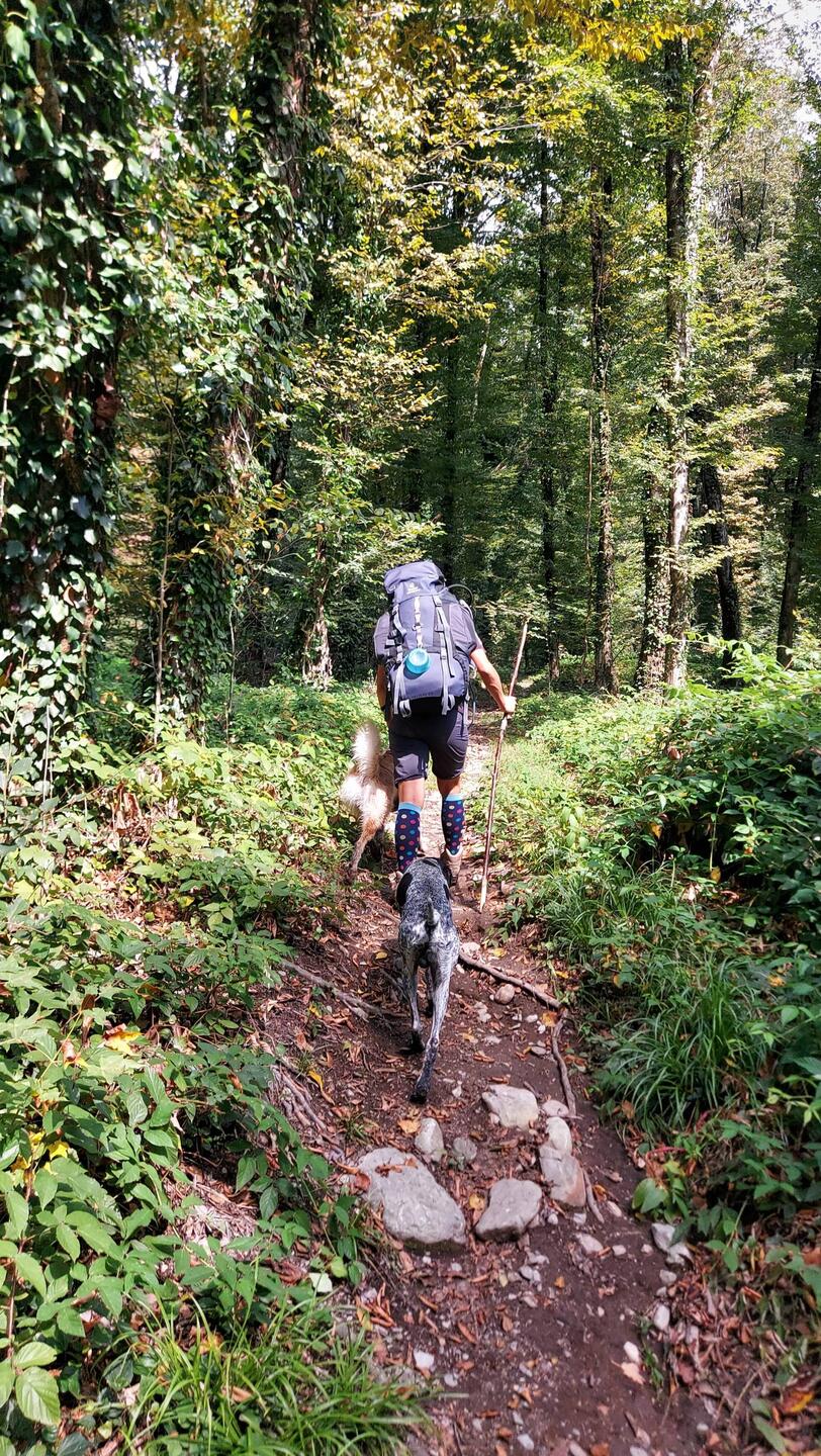 Wenige Minuten später folgt ein wunderschöner Abschnitt. Der Nebel öffnet den Blick auf die Bergwelt und Nebelschwaden ziehen umher. Eine grandiose Morgenstimmung❤. Die Natur & insbesondere die Bergwelt ist das was uns immer wieder zu tiefst beeindruckt❤! So schreiten wir voller Elan voran. Überwiegend durch schönen Herbstwald,
