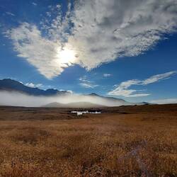 Genau wie die Nacht ist der Morgen nebelig, kalt und feucht. Hier oben ist Herbst. Geschlafen wurde in voller Montur. Inklusive Daunenjacke, Mütze & Handschuhe war es im Schlafsack auszuhalten. Viel schläft man in solchen Nächten nicht. Schlafen ist aber auch nicht das Ziel einer solchen Wanderung😃. So werden morgens mit eisekalten Fingern die naßen Sachen eingepackt und los geht es🥶.
