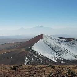 Die Landschaft ist zu dieser Jahreszeit karg. Uns gefällt es sehr gut. Überall kann man sich Wege suchen und so experimentell wandern. Die Krater geben ein unwirkliches Bild ab und als der kleine & große Ararat plötzlich auftauchen ist die Szenerie perfekt. Einfach gigantisch❤❤❤!