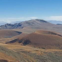 Zum Start der Wanderung gewinnt bereits die Sonne an Kraft. Ziel ist der Azhdahak Vulkan mit 3597m Höhe.