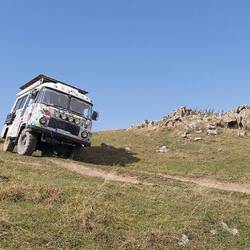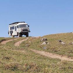 Dann heißt es Abschied nehmen. Bergab geht es dann langsam aber konstant. Robur meistert auch größere Seitenneigungen und tiefe Absätze sehr gut. Lediglich der Riemen der Servolenkung beginnt zu quietschen.