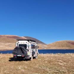 Bei Robur angekommen ist Totto zwar träge, aber sein Zustand ist stabil. Wind macht das Kochen heute unmöglich. Zum Abendessen gibt es eine geräucherte Forelle aus dem Sewansee. Unschlagbar günstig & lecker. Der Abend klingt entspannt aus & wir die kälte treibt uns früh ins warme Bett😊.