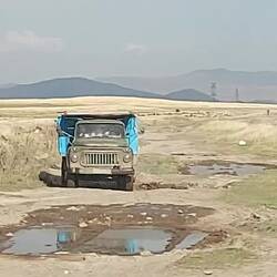 Unten angekommen stoppen wir bei einem Futtermittel Geschäft. Einen Tierarzt kennt der Mann. Er schließt seinen Laden ab und fährt voraus. Leider möchte Robur nicht folgen. In engen Kurven macht der Keilriemen schreckliche Geräusche. Irgendwie schaffen wir es durch größere Radien, durch den Gegenverkehr, dann doch bis zum Tierarzt. Dieser ist sehr freundlich, kann jedoch kein Blutbild machen. Wir müssen nach Yerevan.