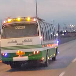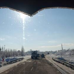 Zwischendurch stoppt uns die Polizei. Wir seien nicht angeschnallt. Stimmt, solch Luxus besitzt unser Oldtimer nicht. Ich erkläre wir hätten Beckengurte. Das stimmt den Polizisten nicht glücklich. Okay, vielleicht braucht es mehr Schmuck. Ich gebe in die Übersetzerapp zu Protokoll, die Gurte sind in Deutschland zertifiziert worden und entsprechen der neuesten Norm. Er kann sich diese gerne anschauen. Im Schnee aussteigen zog er keinesfalls in Erwägung. So war das Problem final gelöst😁!