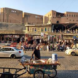 Zum späten Nachmittag geht's wieder ins direkte Zentrum. Rund um Dir Zitadelle tobt das Leben. Hier ist Erbil am spannendsten. Ein toller Gemüsemarkt folgt. Dann gibt's eine Einladung zum Tee und es folgt Kebab. Das war dann der Ostersonntag.