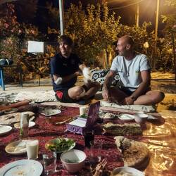 Wieder unter gibt's vom Nachbarn rechts Hähnchen. Danach werde ich vom Nachbarn links rüber gerufen. Es folgen Rindfleisch Spieße und nette Gespräche. Tee und Melone dürfen bei so einem Sonntags Picknick natürlich nicht fehlen.