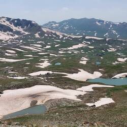 Mich zieht es auf den ersten Gipfel (3480m) und dann weiter auf den Grat. Vom Grat öffnen sich Blicke auf die andere Seite, in Richtung Hakkari. Die Cilo Range zeigt sich erneut und ich komme so ins Grübeln. Da muss man doch irgendwie von Akcali nach Hakkari wandern können. Oder nicht. Tiefe Täler und tief verschneite Berge liegen dazwischen und geben mir Rätsel auf.