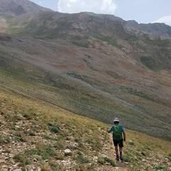 Ich döse so vor mich hin und entdecke auf einmal einen weiteren Wanderer. Eine seltene Spezies in den kurdischen Bergen😅. Er steuert ebenfall den Gipfel mit seinen 3537m Höhe an. Roberto, 67 Jahre jung, kommt aus Italien und trainiert für den Ararat. Da haben wir ja was gemeinsam😃.