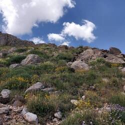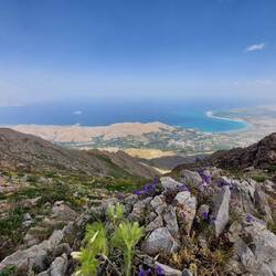 Die Sonne hat bereits um 9 Uhr morgens viel Kraft und kostet zusätzlich Energie. So geht es stetig aufwärts. Die Hänge blühen in sämtlichen Farben und es duftet nach Thymian. Das ist wirklich großartig und beflügelt. Einen Pfad oder ähnliches gibt es nicht. Einen Vorteil habe ich dieses Jahr bereits. Ich weiß, dass der Weg funktioniert. Letztes Jahr war es lediglich ein Versuch, der nach großer Anstrengung glückte.