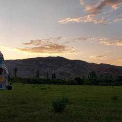 Kurz vor der Dunkelheit komme ich los. Ich möchte unbedingt in die Natur. Ruhe ist von nöten. In der Hitze an der Transitstrecke gen Iran, mit all dem Staub und den LKWs möchte ich nicht bleiben. Eine weitere Nacht im Hotel ist auch keine Traumvorstellung. So erreiche ich einen ruhigen Platz, mit Araratblick, wenige Kilometer außerhalb der Stadt ☺️.