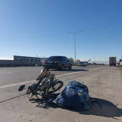 Die Idee kommt mir schnell, ich reise in den Iran! Fahrzeug fällt wegen einem abgelaufenen Zolldokument (CDP) aus. Aber das macht ja nichts. Mohammad hat ja kürzlich in die andere Richtung bewiesen, dass es per Autostop funktioniert. Die Idee ist geboren. Als mobile Basis dient das Klapprad, für die weiten Distanzen der Autostop.
