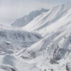 So geht's ins Skigebiet von Gudauri. 25€ der Tagespass, moderne Lifte und ca. 35 Pistenkilometer. Das sind schon ganz tauglicheLes mer