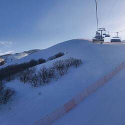 Nach kalter Nacht stehe ich pünktlich um 9 Uhr am Lift. Die Liftzeiten sind spitze. 9 - 18 Uhr ist mehr als okay.