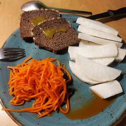 Nachdem sie versorgt sind, gibt's für mich auch was. Das auf dem Schwarzbrot ist übrigens Olivenöl. Es ist recht kühl😀.