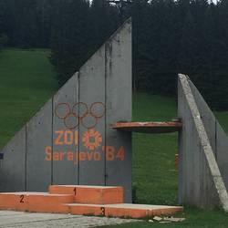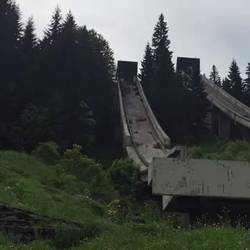 Weiter ging es dann etwas schweigsam und nachdenklich zum nächsten Stopp 🛑. Wir quälten unseren Van 🚐💨 mal wieder hoch hinauf auf den Igman. Hier fanden zu den olympischen Winterspielen 1984 die Skisprung-Wettkämpfe ⛷ statt. Im Anschluss wurde diese neu erbaute Stätte nie wieder für Wettkämpfe genutzt. Während des Krieges hatte sich die UN in die dortigen Räumlichkeiten einquartiert.