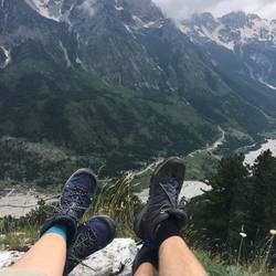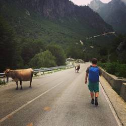 Wir hatten uns für den Potet Loop mit gut 10 Kilometern entschieden ... rauf auf das Bergplateau und auf der anderen Seite wieder runter. Bis zum Einstieg in den Track hatten wir vom Camp ⛺️ aus noch gut zwei Kilometer an der Straße entlang. Als wir am Einstiegs Punkt ankamen, waren wir uns einig „wir sind jetzt schon kaputt 🙈“. Der Weg weiter nach Valbona (ins Tal hinein) ging stets bergauf ... anstrengend.