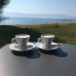 Am nächsten morgen dann eine schöne Überraschung für Daniel ... Kaffee Service ☕️, bei Rino bekommt jeder Camper jeden Morgen einen frisch gebrühten Kaffee. Da ich ja keinen Kaffee trinke, gibt’s für Daniel gleich zwei 👍😉. Für heute geht’s mit unseren gebuchten Shuttle nach Ohrid. Wir sind gespannt 😊 was uns dort erwartet!