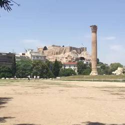 Weiter ging es zum Tempel von Zeus und auch hier hatten wir einen schönen Blick hoch hinauf auf die Akropolis. Da es doch recht heiß war, peilten wir eine Bank im Schatten an und genossen erst mal die Ruhe und die Aussicht. Was wir wirklich klasse finden, in allen archäologischen Stätten gibt es die Möglichkeit sein Trinkwasser kostenlos aufzufüllen, was bei diesen Temperaturen auch dringend nötig ist. Nach einer kleinen Pause ging es für uns nochmal in die Fußgängerzone, noch etwas bummeln, schnell ein leckeres Pita einschmeißen und dann war es auch schon soweit, dass wir uns zum Treffpunkt unserer Free-Walking-Tour aufmachten.