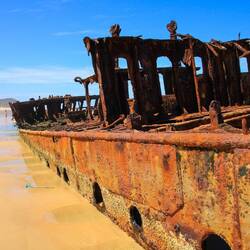 AustralienRejsendeSS Maheno 28. oktober 2022, Australien ⋅ ☀️ 29 °C Noch vor den Pinnacles haben wir halt an der SS Maheno gemacht. Gebaut in den frühen 1910ern wurde sie im Krieg als Latzaretschiff genutzt.Später wollte sie keiner mehr haben da die Luxusliner jener Tage um einiges mehr zu bieten hatten.Nach vielen bewegten Jahren ist sie schließlich als Zielübungspunkt für die australische Marine zur Ruhe gekommen.Læs mereSe oversættelse2 synes om Vis rejse
