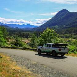 Auf dem Weg zu meinem heutigen Campingplatz, dem Rathtrevor Beach Provincial Park, bin ich entlang der Küste gefahren, und nich auf dem Highway weiter Inland.