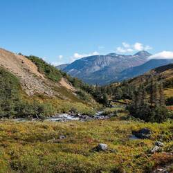 Direkt gegenüber von Carcross mit tollem Blick in die Täler.