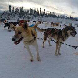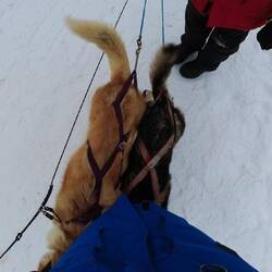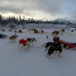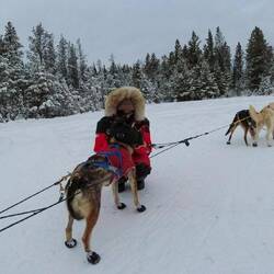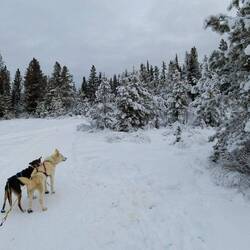 Mein Weihnachtsgeschenk für Abida war eine Ausfahrt mit dem Hundeschlitten. Gezogen von 6 bzw 5 Hunden hatten wir je einen Schlitten für uns.